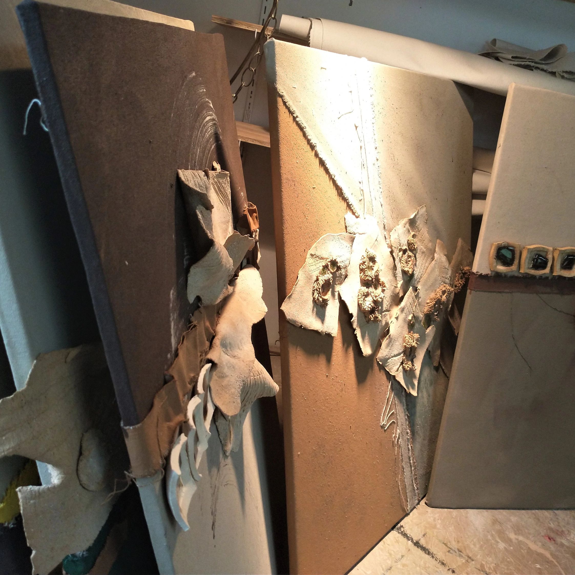 My career as an artist has been centered using the mediums of stoneware and acrylic paint. In this series, I have combined these two powerful artistic elements and fused them into dynamic compositions of texture and color.